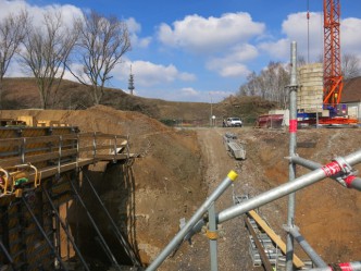 Die Fundamente an der Brücke nehmen weiter Gestalt an. Bereits Ende dieses Jahres, so ist es geplant, soll der Brückenkörper über die Bahngleise geschoben werden.